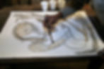 The figurative aspect of Dial’s drawings focuses largely on the relationships of women and men. Women are lyrically formed and sexualized. They are depicted as emotional, intellectual, and seductive, as refuge and as wellsprings of strength. Dial incorporates avatars for both women and men. Birds, nests, eggs, and fish represent aspects of women, evoking themes of nurture and the ongoing cycle of life. Tigers, roosters, and birds depict the nature of men. The fit, energetic tiger can be seen as a man (Dial) and is often intertwined with a female figure with whom he is engaged. The drawings playfully give insight to sexual politics while obliquely evoking the politics of race and society. The sinuous tiger is in motion, watchful, dominating the picture plane. Women, more statically poised, are often nude, their breasts sometimes detached from their bodies as floating orbs, their lips red and cheeks flushed. When Dial’s figures appear alone, the lack of counterpoint defines the situation: men struggle when they are alone; a solitary tiger hunts, watchfully waiting; women assert domestic domination or offer themselves to fulfill their desires.