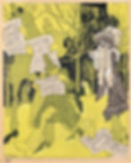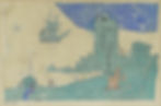 While Feininger's paintings were often intellectual and rigorous, his drawings and watercolors were freer, more expressive of his curiosity and drive to experiment. Through his drawings and watercolors, he explored different approaches. He made playful figurative works like Paris (Newspaper Readers), 1908, Die Angler (The Anglers), 1915, and Men Working, 1910; geometric compositions like (Church in the Woods), 1952, and (Dunes), 1954; and fantastical late figure drawings, which he called “Ghosties.”